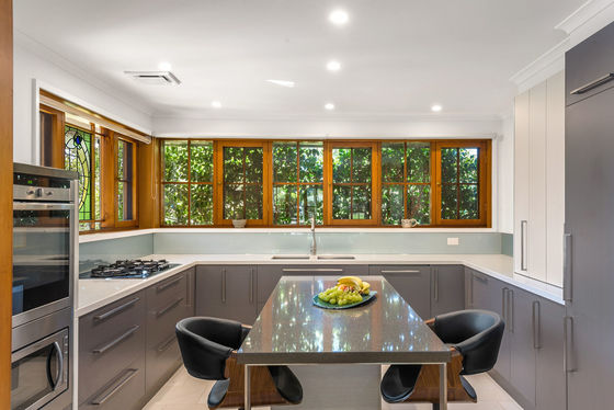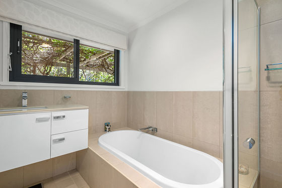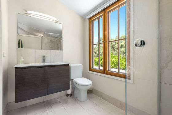 Upstairs, a peaceful landing doubles as a reading nook, leading to the expansive master retreat complete with timber windows, a generous walk-in robe and a stylish ensuite with a frameless shower. Downstairs, the recently renovated kitchen is a standout, thoughtfully designed with exceptional storage and functionality. It boasts a wall oven and microwave tower, integrated dishwasher, fridge and freezer, pot drawers, a large pantry and a central island that anchors the space. Overlooking the dining and living area, the kitchen is bathed in beautiful morning light, while the rear outlook is softened by a wisteria-covered pergola that filters sunlight into the home.