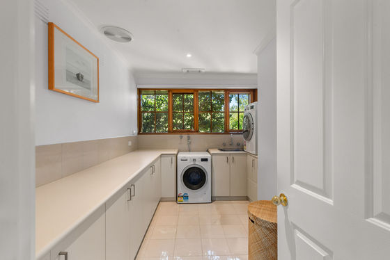 A large, centrally located laundry enhances everyday practicality, positioned within easy reach of the kitchen as part of a well-planned work hub. The remaining three bedrooms are set on the ground floor, surrounding a third living area"perfect as a teenagers' retreat"complete with a wood fireplace and rich hardwood timber floors that reinforce the home's warm, country-inspired aesthetic. Modern updates including double-glazed sliding doors and windows improve energy efficiency while seamlessly connecting indoor spaces to the surrounding pergolas and outdoor entertaining zones.
