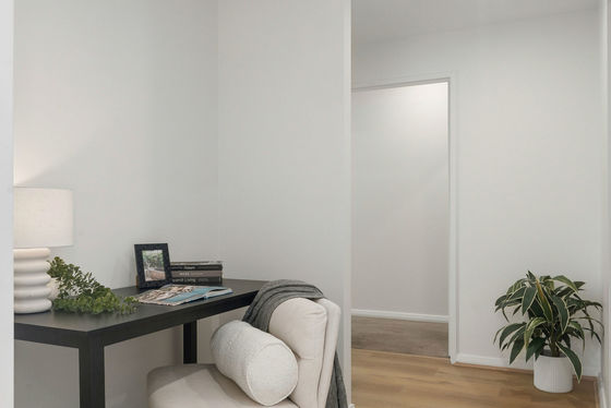 * Living area fitted with low‑maintenance, durable hybrid flooring designed for effortless upkeep.