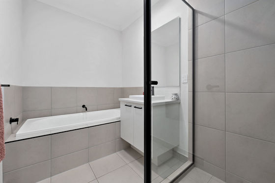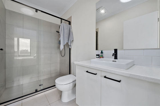 Upstairs, discover three well-appointed bedrooms, including master bedroom with an ensuite and a walk-in robe. A thoughtful layout provides privacy and a sense of luxury. The downstairs guest room, complete with a built-in robe and a shared third bathroom, offers flexibility and convenience.