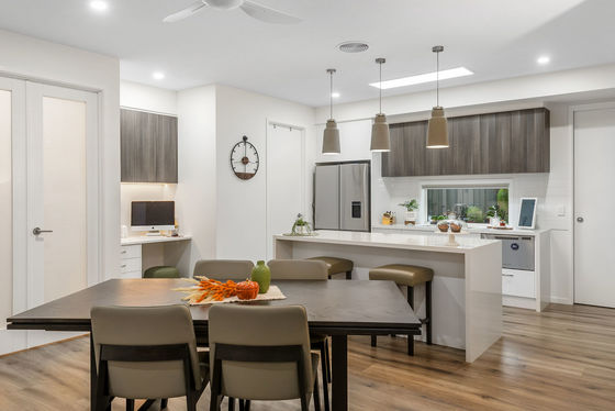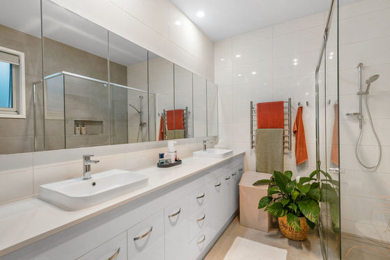 At the heart of the home, a light-filled kitchen with a large skylight and walk-in pantry flows seamlessly to the standout enclosed alfresco. Complete with full glass sliders, retractable flyscreens, sun-filter and block out blinds, plus its own reverse-cycle heating and cooling, this versatile space can be enjoyed year-round.