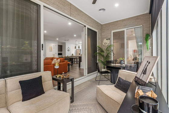 - Large enclosed alfresco area with full glass sliders and sun filter blinds (south) and block out blind (west)