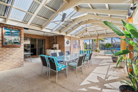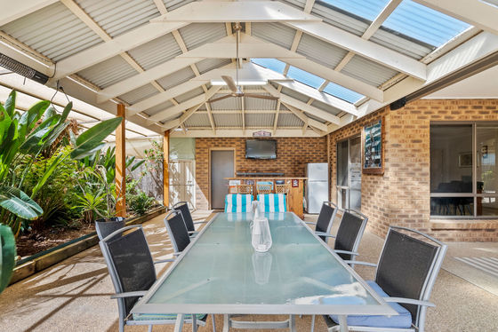 The outdoor area has been designed for year-round enjoyment, offering a perfect balance of covered entertaining space and open yard for kids and pets to play. Additional highlights include solar panels, helping to improve energy efficiency and reduce ongoing power costs.