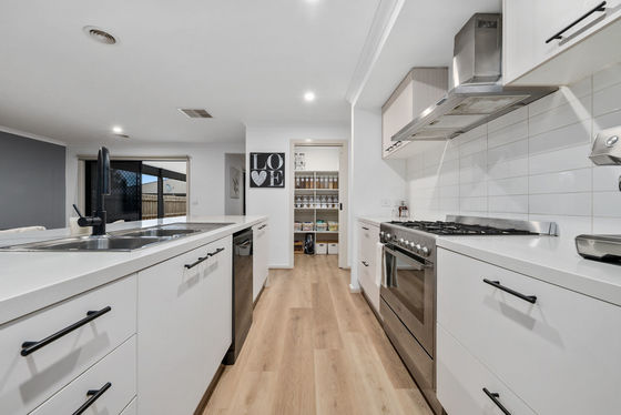 Entering the heart of the home you will be amazed at the space on offer. The inviting kitchen boasts; 40mm stone benchtops with waterfall finishes, 900mm stainless-steel oven and gas cooktop, upgraded tap, dishwasher and ample bench and cupboard space with the walk-in pantry, perfectly incorporating the huge meals and living areas. The massive laundry behind the kitchen adds a touch of functionality for those looking to accommodate big families.