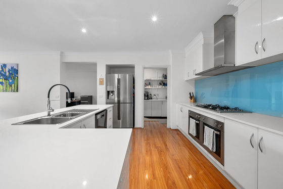 At the heart of the home, the stunning kitchen is sure to impress, featuring stone benchtops, double sink, 900mm cooktop, double oven, dishwasher, ample bench and cabinetry space, and a large walk-in pantry. Perfectly positioned, it overlooks the separate meals area and formal living zone, complete with a Conara fireplace and split system for year-round comfort. Adjacent to the kitchen, the theatre room provides the ideal setting for family movie nights, offering a versatile space to be enjoyed all year round.