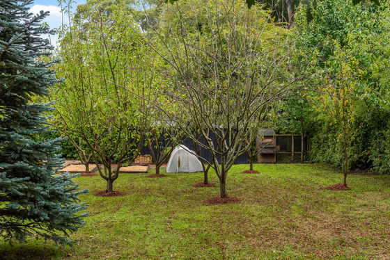 The gardens are a standout feature, with a broad selection of deciduous trees including maples, claret ash, liquid ambers, weeping cherries, silver birches, elms and oaks, along with Japanese-inspired plantings. A productive orchard, chicken coop, garden shed and elevated deck further enhance the setting.