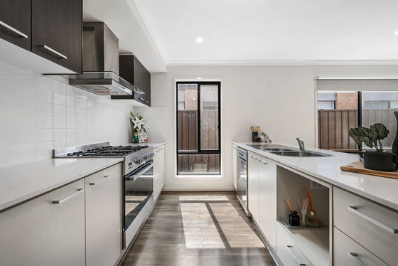 At the heart of the home, the kitchen is designed to impress with quality finishes including stone benchtops, 900mm gas cooktop and oven, dishwasher, rangehood, double sink, and plenty of bench and storage space. It seamlessly connects to the open-plan meals and living area, making it perfect for everyday living and entertaining.
