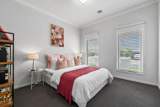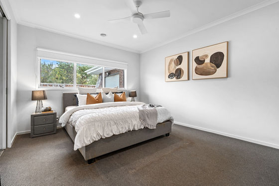 The master bedroom is privately positioned at the front of the home and offers generous space, complete with a large walk-in robe and a well-appointed ensuite featuring double vanity, oversized shower, separate toilet and a ceiling fan for added comfort.