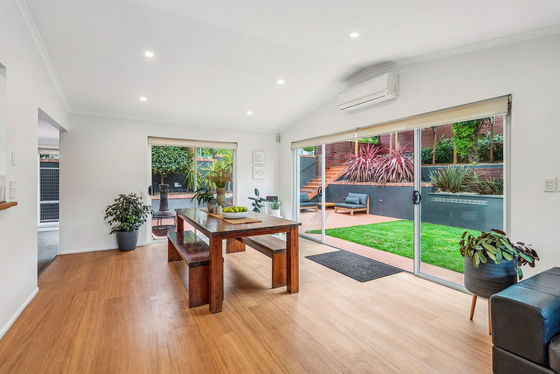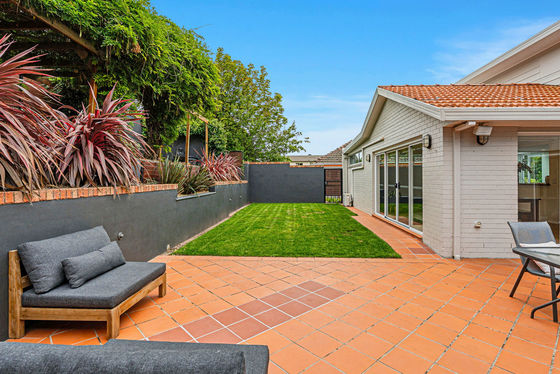 At the heart of the home, the kitchen is both practical and inviting, designed to cater to everyday living while effortlessly accommodating entertaining. It connects seamlessly to the main living and dining areas, where natural light pours in and creates a warm, inviting atmosphere. This central living area extends beautifully outdoors, where large sliding doors open onto a private, low-maintenance courtyard. This is where the home truly shines, an ideal setting for entertaining guests, enjoying long summer evenings, or simply unwinding in a peaceful and private environment.