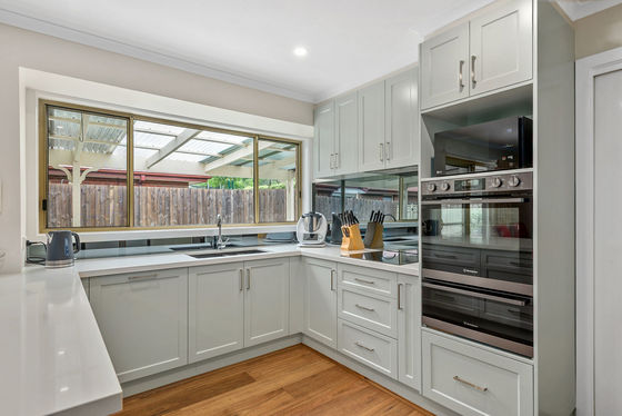 Set on a generous 897m² (approx.) allotment, the home comprises three spacious bedrooms with built-in robes, including a master with a stylishly renovated ensuite, complemented by an updated central bathroom. At the heart of the home, a meticulously renovated kitchen impresses with stone benchtops, an induction cooktop, double wall oven and integrated dishwasher, all flowing seamlessly through a functional and easy-to-navigate floor plan.