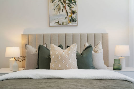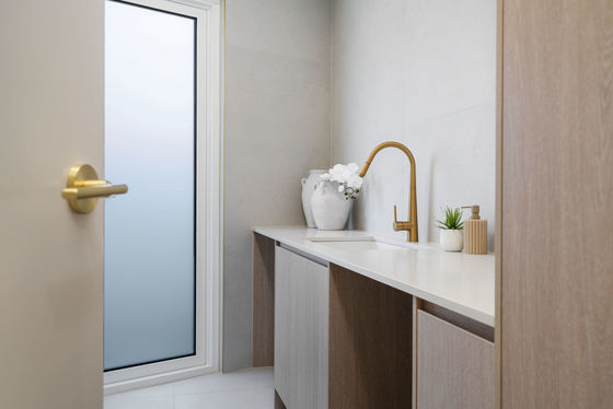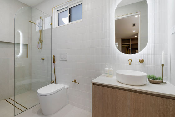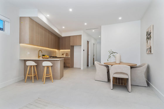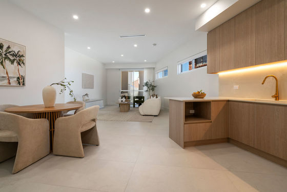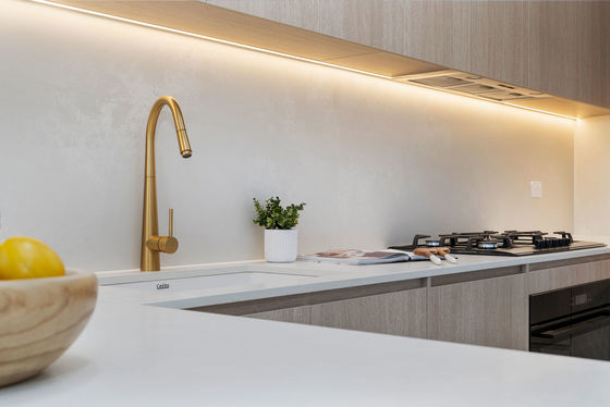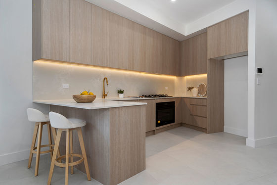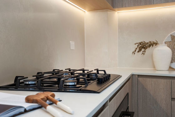 - Gourmet kitchen with stone benchtops, gas cooking, LED ambient lighting & ample cupboard space