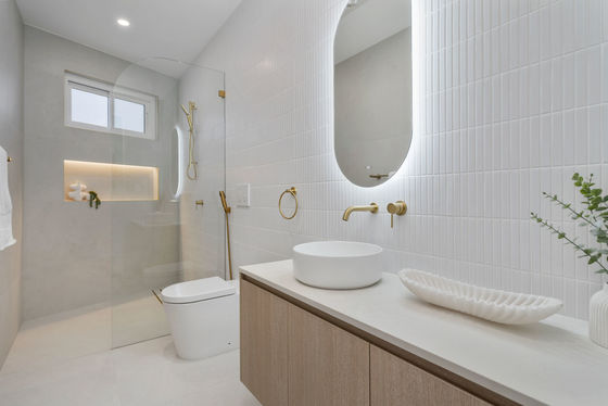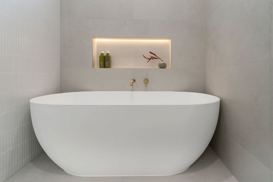 - 3 Luxurious bathrooms tiled floor to ceiling with freestanding bath & backlit mirrors