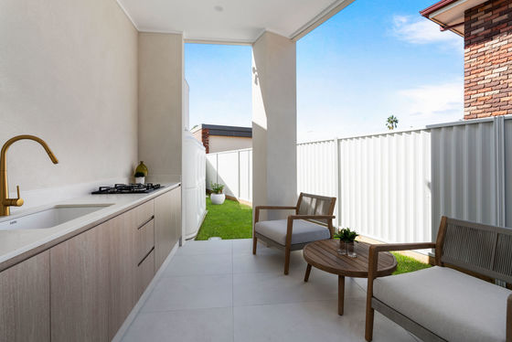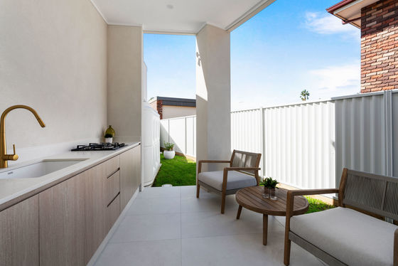 - Alfresco area for entertaining with outdoor kitchen including gas cooktop & sink overlooking low maintenance level yard