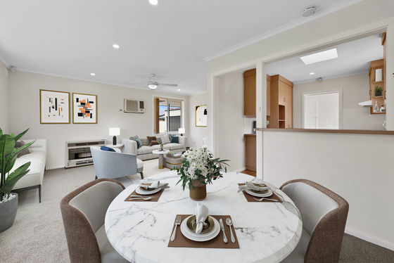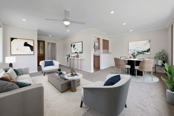 Light-filled living and dining area with neutral tones