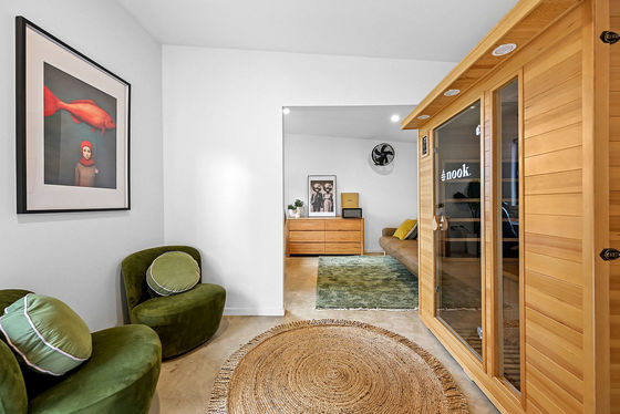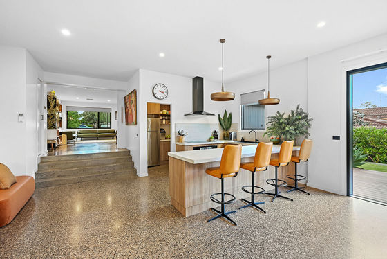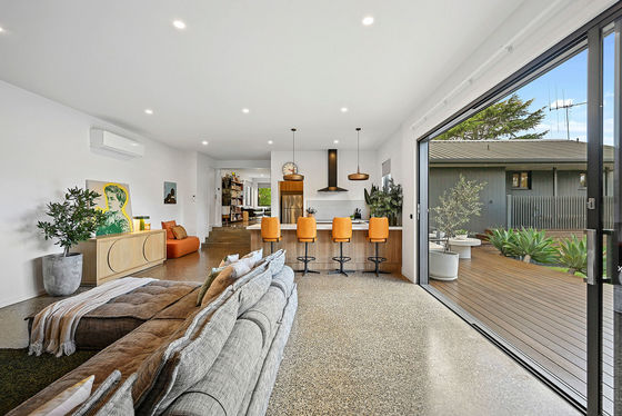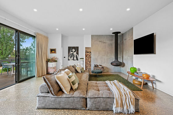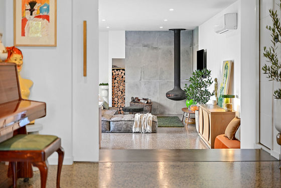 There's no other property like this grand bespoke design in Kennington's premier street. The vendors have created the ultimate family sanctuary, where oversized spaces cater to everyone. Spanning across a total 214m2 of living are four huge bedrooms, three designer bathrooms, and two luxury living spaces. High ceilings, set square cornice, polished concrete floors and big picture windows with green views characterise the spaces. A floating oval solid fuel heater in front of a brushed concrete wall in the open-plan living area will bring warmth and character in the cooler months ahead. Add in large backyard studio spaces, a secure garage and storage room, and you'll agree every wish is granted here and more.
