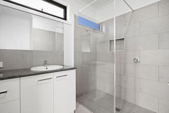This modern three-bedroom home offers a functional layout designed for comfortable living. The main bedroom includes a walk-in robe and ensuite, while the remaining bedrooms feature built-in robes and ceiling fans, serviced by a central bathroom.