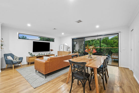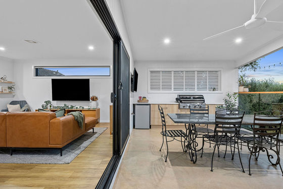 Forming the heart of the home, the open-concept kitchen, meals and living zone flow through stacking sliders to an elevated alfresco deck boasting an outdoor kitchen and uninterrupted views over the private rear yard.