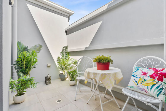 Privately positioned at the rear, the master suite is a peaceful sanctuary, complete with a spacious walk in robe, beautifully finished ensuite and private access to the rear terrace and gardens. The second bedroom is thoughtfully located toward the front of the home, serviced by its own bathroom and separate powder room, ensuring the ultimate in comfort and privacy. A cleverly integrated open plan study provides a practical work from home solution without compromising overall design.