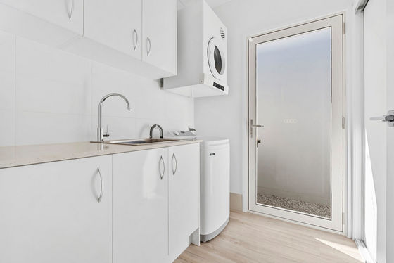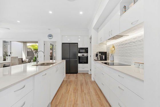 At the heart of the home, the contemporary kitchen combines style and practicality with generous storage, stone benchtops, a large central island, quality stainless steel appliances and well appointed walk in pantry. The kitchen seamlessly opens to a private side courtyard, offering a quiet retreat or sunny breakfast space.