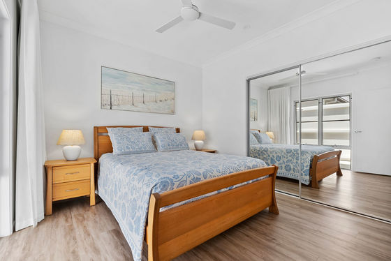 The master suite is privately positioned at the rear, offering a peaceful retreat complete with a walk through robe and a beautifully finished ensuite with twin vanities and an oversized shower. A second bedroom enjoys its own separation at the front of the home, with easy access to the main bathroom and powder room, providing the ultimate in functionality and privacy.