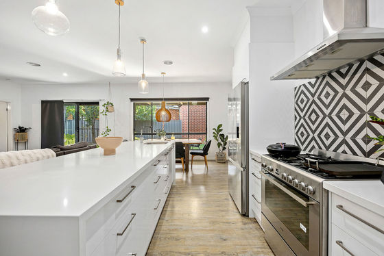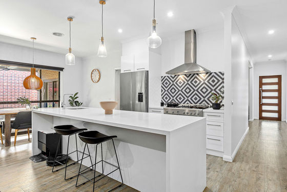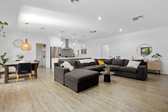 This premier property makes excellent use of its corner allotment, offering dual driveways to two double garages - a feature worth noting up front for families that need the space. The handsome brick veneer home is also generous, featuring four bedrooms, three internal living spaces and extensive outdoor living - let all the celebrations centre around home as you settle in and make memories to cherish. The large entertainer's kitchen is a standout, with its walk-in pantry, wide pot drawers, freestanding 900mm stove, rangehood, dishwasher and long island/breakfast bar with stone waterfall benchtop.