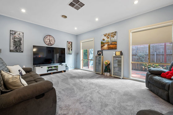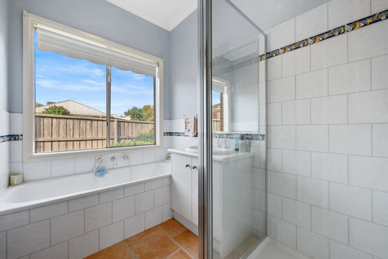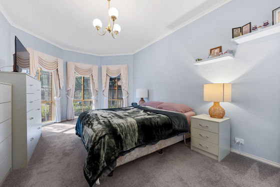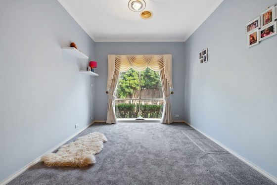 At the front of the home, a light-filled formal living area provides an ideal space for entertaining guests or relaxing with family. The generously sized master bedroom offers a private retreat, complete with a spacious ensuite featuring a large vanity, spa bath, and ample storage, along with a walk-in wardrobe.