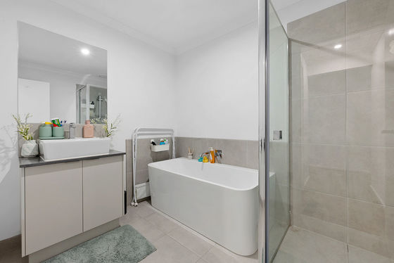 Upon entry, you're welcomed by a spacious and light-filled master bedroom complete with a walk-in robe and a stylish ensuite featuring stone benchtops and a calming neutral colour palette. The remaining three bedrooms are generously sized, each fitted with built-in robes, and are serviced by a modern central bathroom that includes stone benchtops and a large, relaxing bath.