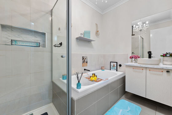 Thoughtfully designed for both functionality and comfort, the grand master suite serves as a private retreat, complete with a walk-in robe and luxurious full ensuite. The remaining bedrooms are generously proportioned, each fitted with built-in robes and serviced by a beautifully finished central bathroom, enhanced by an elegant chandelier that adds a touch of sophistication.