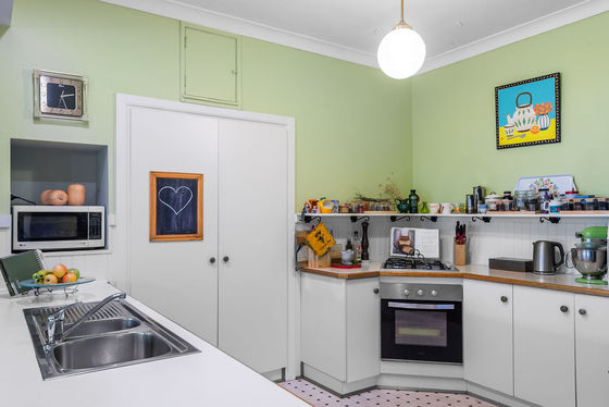 Softly presented and filled with natural light, the home retains its period charm while incorporating thoughtful updates throughout. A welcoming entrance hall and wood heater create an immediate sense of comfort, complemented by a layout designed for relaxed, practical living.