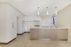 Large modern kitchen with stone bench top