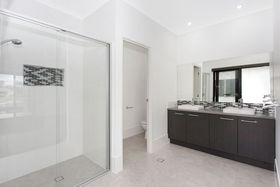 • Spacious Master bedroom with walk in robe and en suite and sliding doors opening to the garden. The en suite has a large walk in shower, separate toilet and double vanities