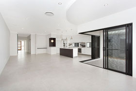 • Large tiled open plan living, kitchen & dining with bi fold doors opening to an undercover alfresco area