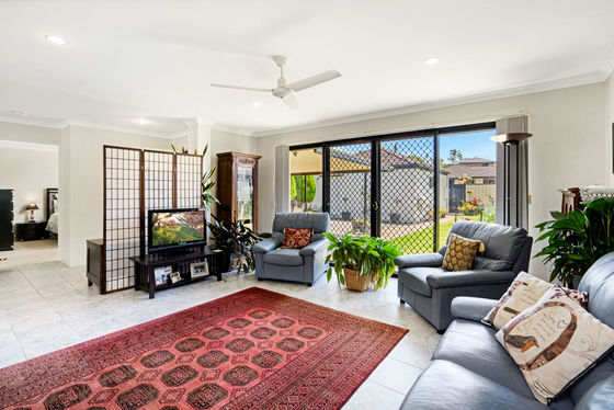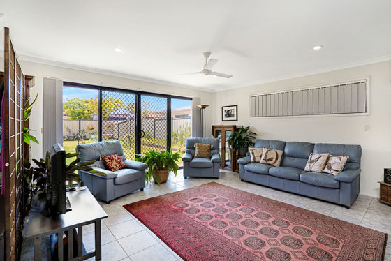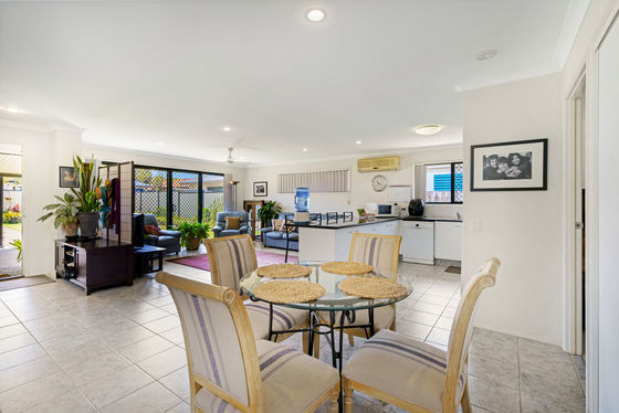 The home welcomes you with a bright and spacious open-plan living area filled with natural light. Tiled flooring and air conditioning provide comfort year-round, while double doors open out to the covered entertaining area, creating a seamless flow between indoor and outdoor living.