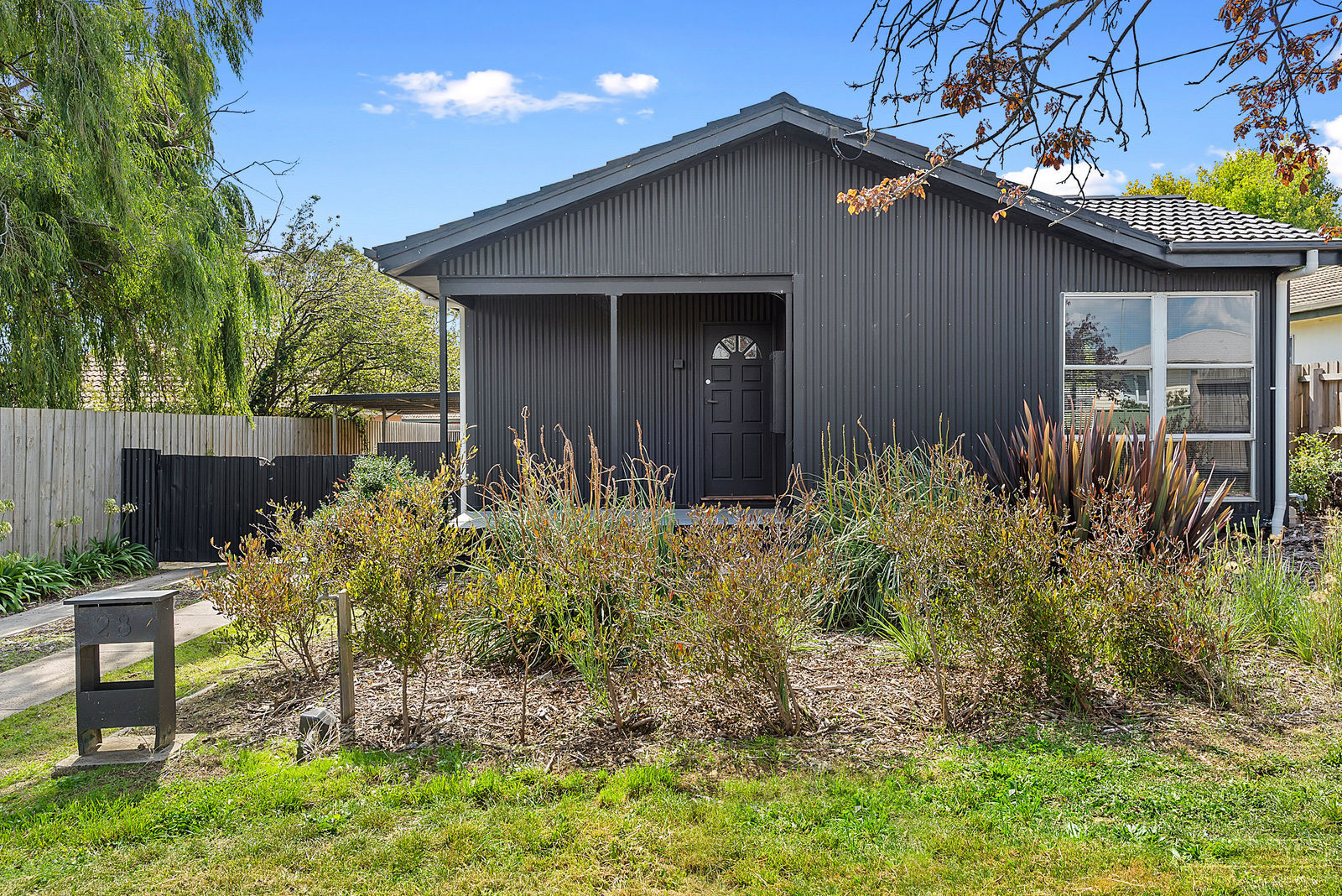Outside there is a carport, and further shed with gravel floor and some other small shedding. The yard is completely enclosed and spacious. Native landscaping at the front of the home completes the picture.