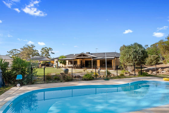 Two separate living areas are positioned within the home. The kitchen includes stainless steel appliances, storage cabinetry and preparation space and overlooks the undercover entertaining area and fully fenced swimming pool.
