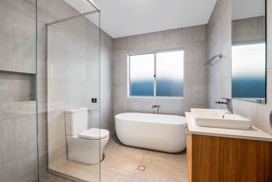 - Large luxurious bathroom with separate bathtub and shower