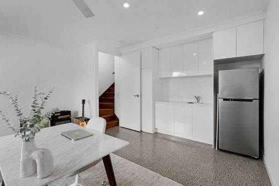 Comfort is assured with split-system air conditioning in the living area, ground-floor retreat, master bedroom, and second bedroom, plus ceiling fans in all bedrooms. The downstairs area offers a private retreat or work-from-home space, featuring its own split-system air conditioning, kitchenette, ample storage, and a sink.