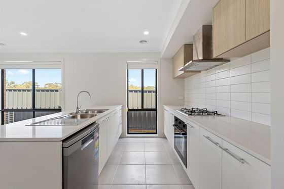The open-plan kitchen, meals and living area forms the central hub of the home. The kitchen is equipped with modern stainless steel appliances, along with storage cabinetry and preparation space.