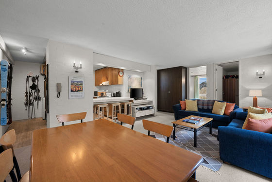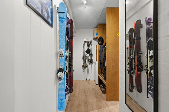 Designed with comfort and practicality in mind, the apartment includes hydronic heating in every room, dedicated ski storage, a drying area, and laundry facilities including a washing machine in the entry. Additional storage with a shared ski tuning and drying room used by only three other apartments, are located just outside the door.
