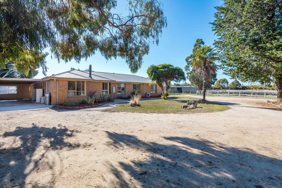 Outside is to be enjoyed with a private, enclosed backyard, 4 paddocks (one with a dam), some mature natives for shelter, and an excellent bore & rainwater tank ensuring no water bills. Extensive infrastructure includes a large 14m x 12m colorbond shed with high access, a hoist, concrete floor & power, storage shed with stables, hayshed and double garage, as well as satellite NBN and a 5kw solar system.