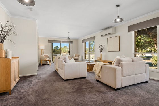 Featuring polished hardwood timber floors throughout, the home also boasts a well-equipped modern kitchen, 3 living areas and 4 bedrooms, all with built-in-robes, the master with ensuite & walk-in-robe, and a north facing sunroom with study/5th bedroom. Reverse cycle air conditioning and wood heaters provide year-round comfort, whilst the parents retreat is well suited to multi-generational living.