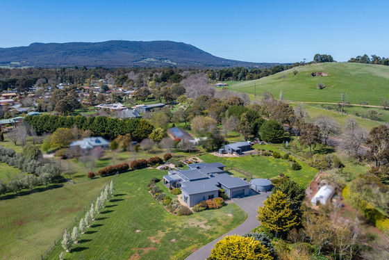 Two dedicated studies make this home ideal for families with remote workers or students, and sustainable living is supported with a 20,000-gallon rainwater tank connected to the house and 6.1-star energy rating. Outdoor entertaining is a dream, with a fabulous alfresco area and a stunning rooftop deck offering panoramic mountain views. Additional features are expansive, but include a great shed, an asphalt driveway with electric gate, double glazing for year-round comfort, window coverings and in-floor hydronic heating throughout the house. Located just minutes from Woodend township with easy access to transport, shopping, and entertainment, this remarkable home is perfectly suited to families, professionals, or those seeking extended family living in a luxurious setting.