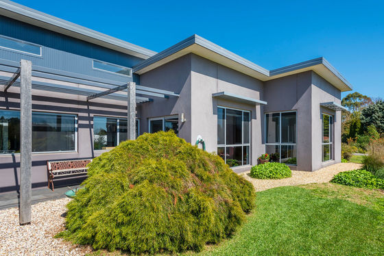 Set on an expansive 7,260m² of beautifully landscaped land, this architectural masterpiece seamlessly blends luxury, functionality, and thoughtful design. Custom built by Glen Loddon Homes in 2018, this exceptional four-bedroom residence is a statement of quality and comfort. The heart of the home is a large entertainer's kitchen featuring premium appliances, stone benchtops, and an open-plan layout that flows effortlessly into the spacious living area and a cozy sitting room warmed by a gas log fireplace. Light and space are in abundance, with raked ceilings and clerestory windows creating a bright, airy atmosphere throughout.
