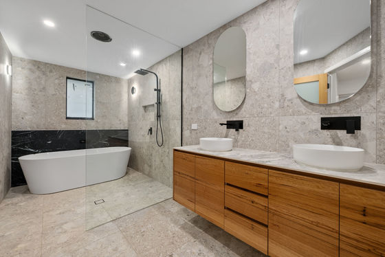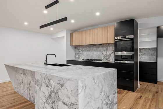 Entering the property, you will be amazed with the natural light beaming past the mountains into your open plan living. Comfortability is achieved with the fire place and the reverse cycle split system. The open plan living area is large enough for all the family dinners and entertainment. The stylish modern kitchen offers an enhanced space for the chef of the family to cater, with imported Italian stone used in a unique way to create the island bench and used as the bench top and splash back. With the two tone cabinetry that flow into the butler pantry are all accompanied by the 900mm gas cook top and wall oven. The kitchen also boasts a dishwasher and plenty of bench and cupboard space.