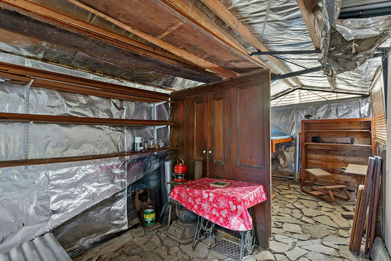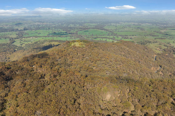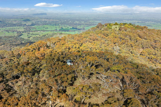 A well-maintained gravel driveway winds upwards through forested slopes to the secluded peak which is levelled sufficiently to set up camp alongside the existing artist's studio/camp-hut with roof catchment water tanks set up.