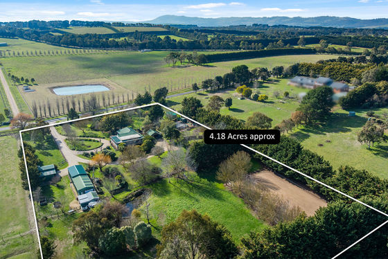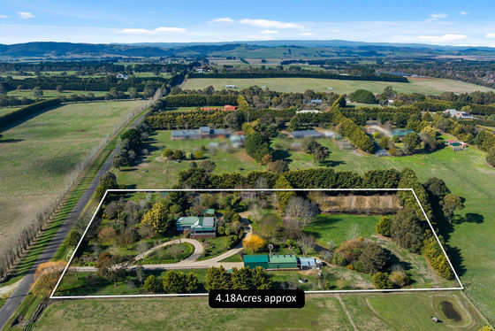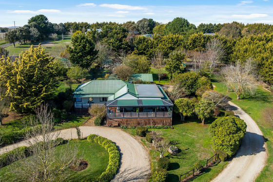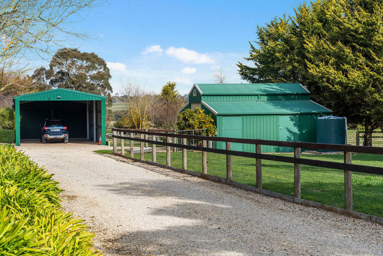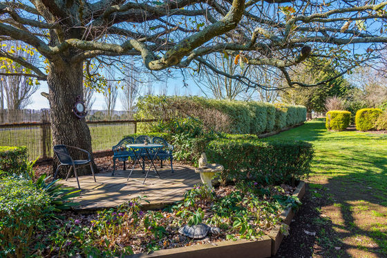 Offered for the first time, this remarkable 4.19-acre (approx.) property offers the rare opportunity to enjoy a country lifestyle where every detail has been thoughtfully cared for. As neat as a pin, it's a true gardener's paradise " a place for those passionate about beauty, bounty, and tranquillity. Established ornamental gardens bloom with colour and texture, framed by sculpted hedges, camellias, rhododendrons, and an endless array of flowers and bulbs. Under the canopy of mature oak trees, paved seating areas create a series of enchanting outdoor "rooms," perfect for quiet reflection or lively gatherings. The orchard is a fruit lover's dream, with apples, pears, cherries, espalier stone fruit and even a dedicated raspberry room! Alongside productive veggie patches, a garden shed, chook yard, and an enclosed dog run.