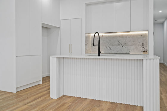 • Designer kitchen with upmarket appliances, stone benchtops & ample storage
