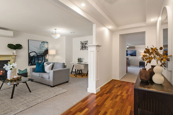 At the heart of the home is a well-appointed, functional kitchen overlooking a large open-plan family and dining area, perfect for everyday living and entertaining. A separate formal lounge provides a quiet retreat or flexible space for work or relaxation.