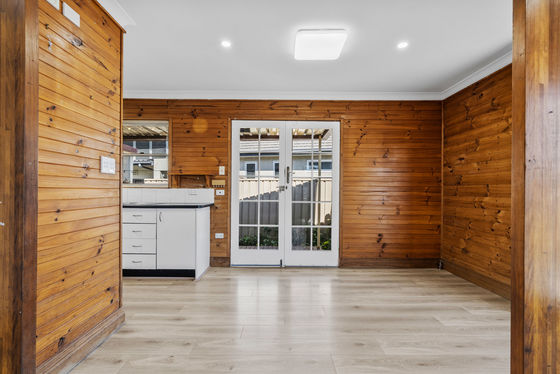 - Good size kitchen and dining area with access to the side covered entertainment area