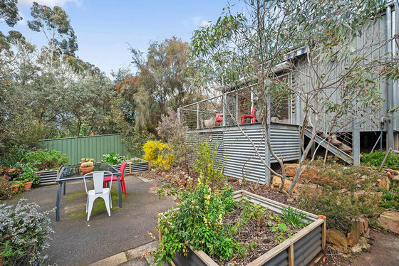The deep block reveals more surprises as you step down a terraced garden with timber retaining walls, raised vegetable beds, and established trees. A garden shed down the back is a handy addition, as is the big water tank.